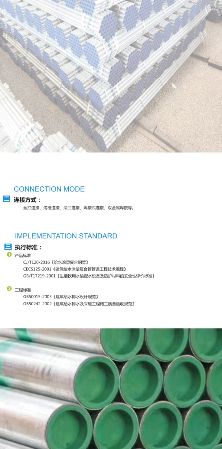給水涂塑復(fù)合鋼管,以直縫焊管為基管,它具有優(yōu)良的綜合性能和很強(qiáng)的耐腐蝕性,使用外界溫度為-40℃-90攝氏度,適用輸水溫度為30℃..